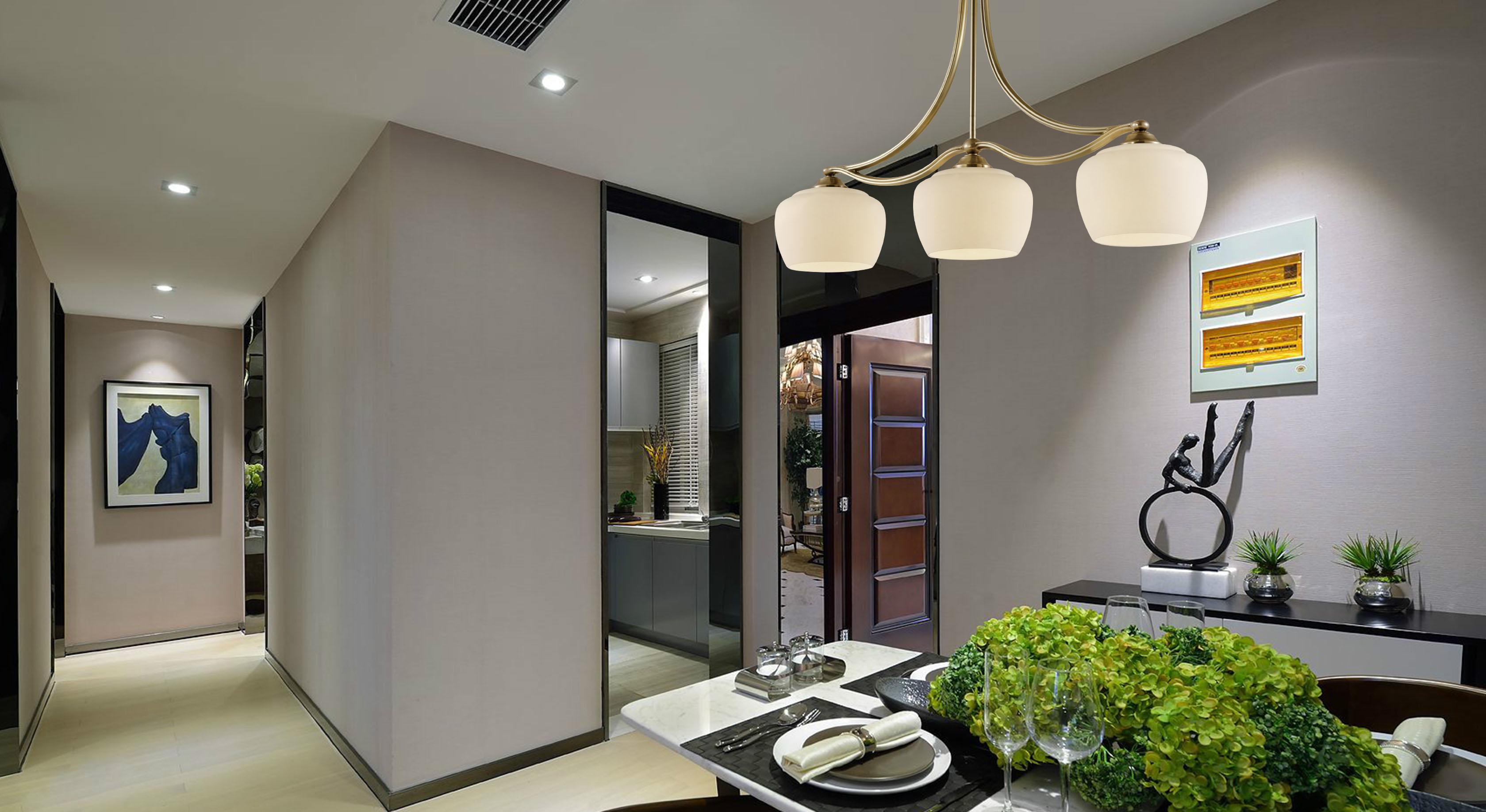 3頭餐吊燈 全銅